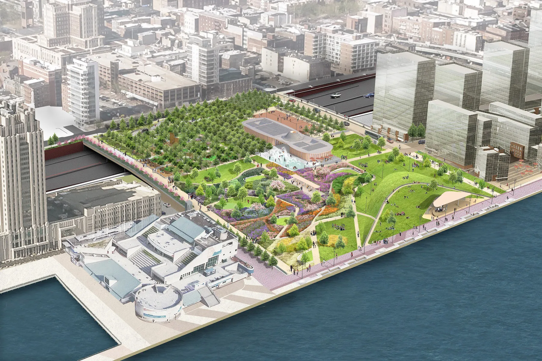 This is set on a highly anticipated public space that will reconnect the Delaware River waterfront to the city street grid.